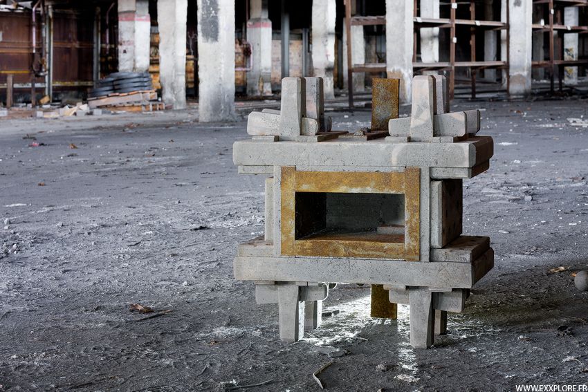 Voici le bâtiment principal qui accueille le four et les rayonnages au premier étage, notez l'architecture tout en béton.