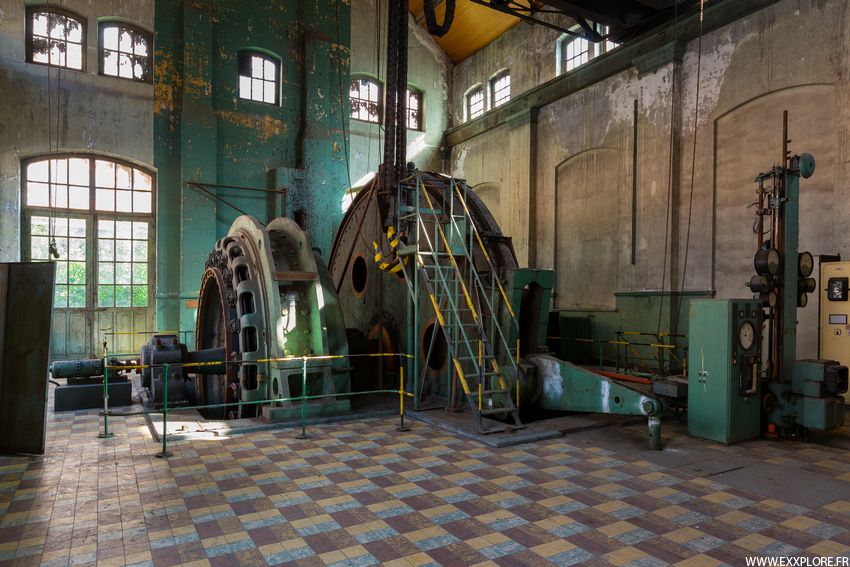 Il y a au total 4 machines d'extractions, deux pour chaque puits, dans 4 bâtiments.