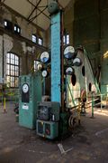 Nous voici à présent dans la centrale électrique. C'est un grand hall, presque complètement fermé, dont seule une partie du toit est vitrée. Elle alimente la mine toute entière et envoie l'air comprimé nécessaire pour les machines du fond. Les 3 premiers turbos-compresseurs sont également issue de la firme Suisse Brown & Boveri, plus loin il y en 3 autres, plus petits, de chez ACEC.