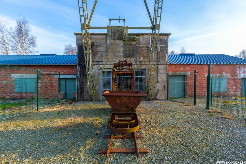 Le bâtiment d'extraction, est typique de la construction allemande en gros béton armé d'époque.