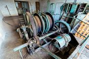 La machine d'extraction est une machine à double tambour à câble rond. Observez la concavité de l'espace intérieur du bâtiment.