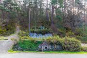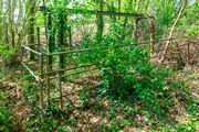 Le site est laissé à l'abandon. Voici l'emplacement des anciennes roues hydrauliques. Celle qui reste a été installé par l'association (6m de diamètre à l'échelle 1/2) ainsi que la maquette d'un chevalement en bois. Caché sous la végétation c'est l'ancienne maison des ingénieurs.