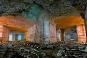 Il reste au détour de galeries tout le matériel du champignonniste : citernes, cuves à fioul, tracteurs, paniers de récolte, cages de transports et autres chambres de pasteurisations. C'était une culture vraiment intensive.