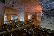 La partie champignonnière occupe la plus grande partie des carrières, les caves sont toutes nommées (bien joliment d'ailleurs) c'était une culture principalement en sacs mais il reste à un endroit une partie en meules, encore assez bien préservée.