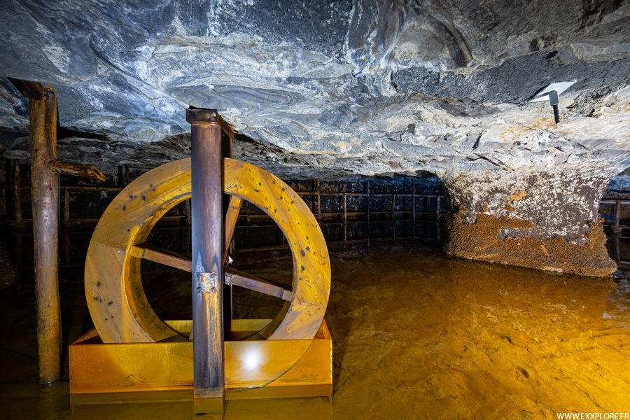 Voici les réservoirs Rond et Marie-Louise, premiers arrêts dans la visite de la mine. Ces réservoirs ont été entièrement taillés à la main à la massette et à la pointerolle, on peut voir les marques sur la galerie (Cf: Dernière photo). Ces réservoirs permettaient de lessiver la roche, autrefois la roche extraite était sortie de la mine puis cuite, par la suite cette roche était stockée dans ces grands réservoirs ronds, ils étaient fermés hermétiquement et saturés en eau. La roche dissoute, il ne restait plus que la saumure. Il n'y a qu'à regarder les parois, elles sont complètement cristallisées (Cf: Première photo)