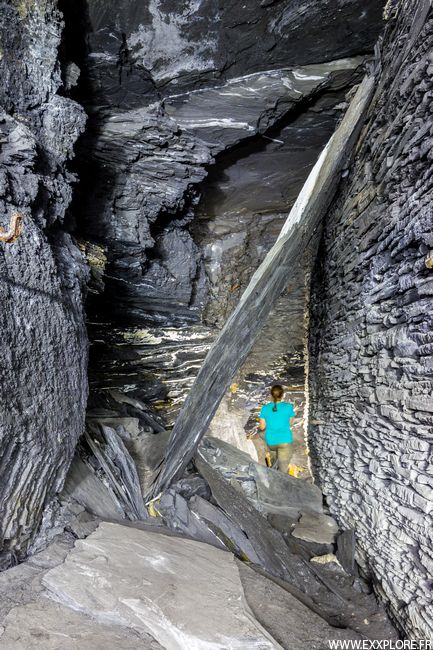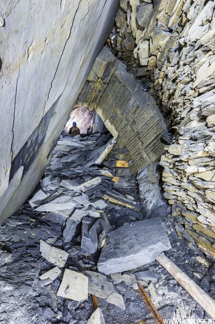 Ce premier réseau donne l'ambiance de ces ardoisières : celle du chaos. Bien que les les volumes soient d'assez grandes dimensions une large partie est en effondrement et ne vont plus bien loin aujourd'hui.