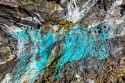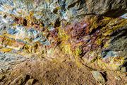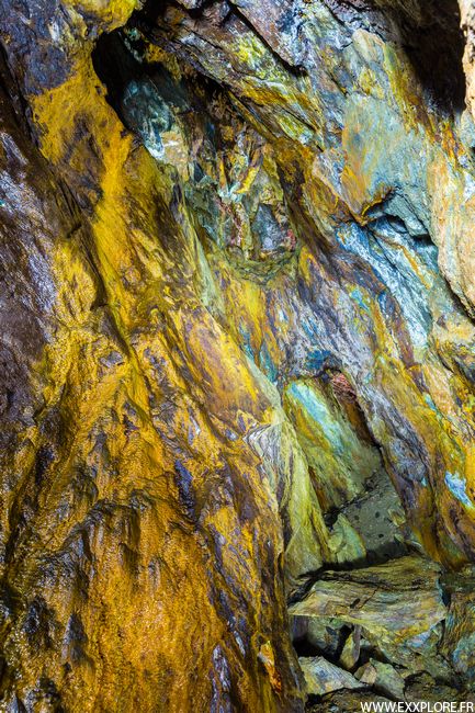 Au niveau juste en dessous, c'est légèrement plus haut, les parois éclatent de couleur, et on peut même apercevoir quelques minéralisations assez belles.