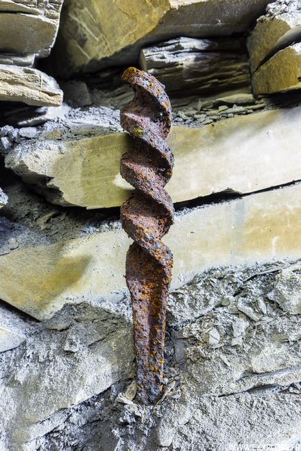 Puisque l'on y retrouve une partie des outils des ardoisiers, dont ce très beau pic, qui est pris dans la concrétion, comme figé pour la mémoire.