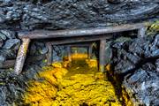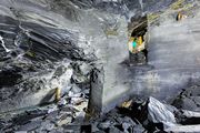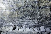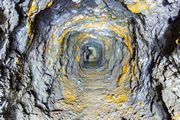 L'entrée de la galerie de roulage est en très mauvais état, celle-ci nous amène vers les chambres d'extraction au coeur de la montagne.
