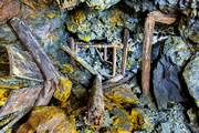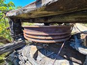 Dans les remblais se trouve ce châssis de berline. C'est aussi là que l'on se rend compte de la quantité de déchets et que cette ardoise n'etait pas de bonne qualité, car elle s'abime avec le temps.