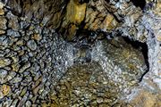 Bien que la mine soit relativement petite, la progression est rendue difficile. Cette seconde photo (Cf: Pilier) montre bien la couche exploitable de cuivre, dont il reste au centre un pilier de soutien.
