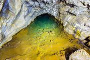 La galerie devient plus large, nous la prenons en remontant. Nous débouchons à nouveau timidement dehors, l'eau s'infiltrant, il y a une partie inondé et à côté une petite cavité naturelle.