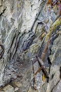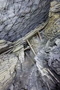 Voici un autre exemple qui illustre la difficulté d'accès et le pendage de ces ardoisières.