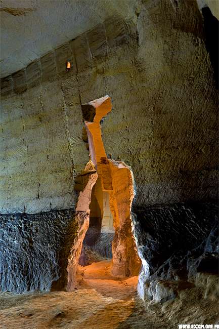 Ce sont plusieurs exploitations qui ne se rejoignent pas sous terre, mais qui sont très proches en surface. Il y a plusieurs bouches de cavages sur tout le flanc de la montagne. On a extrait ici le tuffeau c'est un mélange de craie et de sable. Cette pierre est très tendre et donc facile à creuser, elle sert surtout pour la construction.