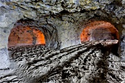 Celle-ci s'élargit et reçoit des consolidations avec des cintres. Au dessus des cintres le ciel est consolidé par des pierres taillées en arc en plein cintre et des remblais sur les côtés. Mais avec les années ca ne tient plus beaucoup...