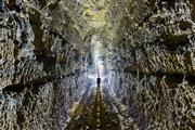 Dans ce secteur les galeries sont plus basses et se terminent dans cette consolidation en forme de tunnel, qui était visiblement une ancienne entrée, aujourd'hui bouchée.